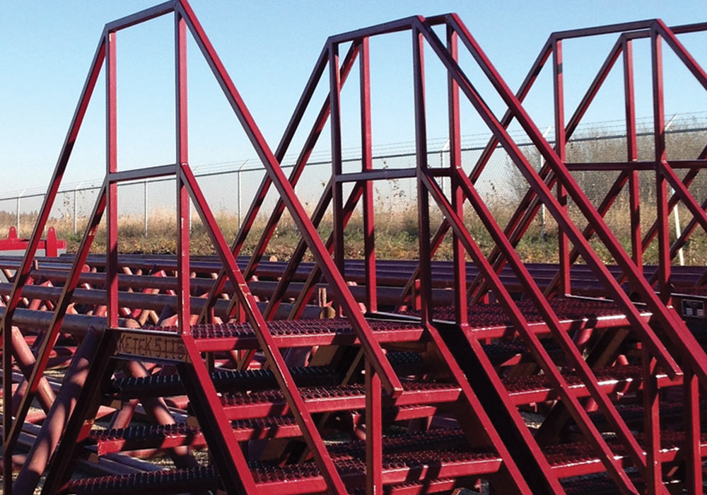 Berm Stairs provide safe access to and from the tank farm when containment berms are used. The Berm stairs prevent potential accidents caused by slipping on the berm liner.
